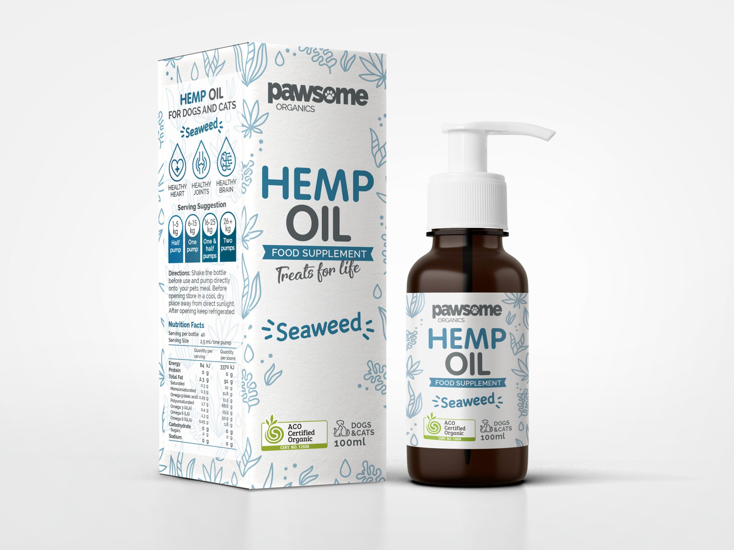 Hemp oil is very beneficial to both dogs and cats, the essential fatty acids can help assist anything from joint health to nurturing the skin and coat. You just add the oil to their meal once a day, nice and simple.